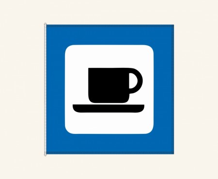 Flagg med skiltsymbol for spisested. Kvadratisk flagg 160 x 160 cm.